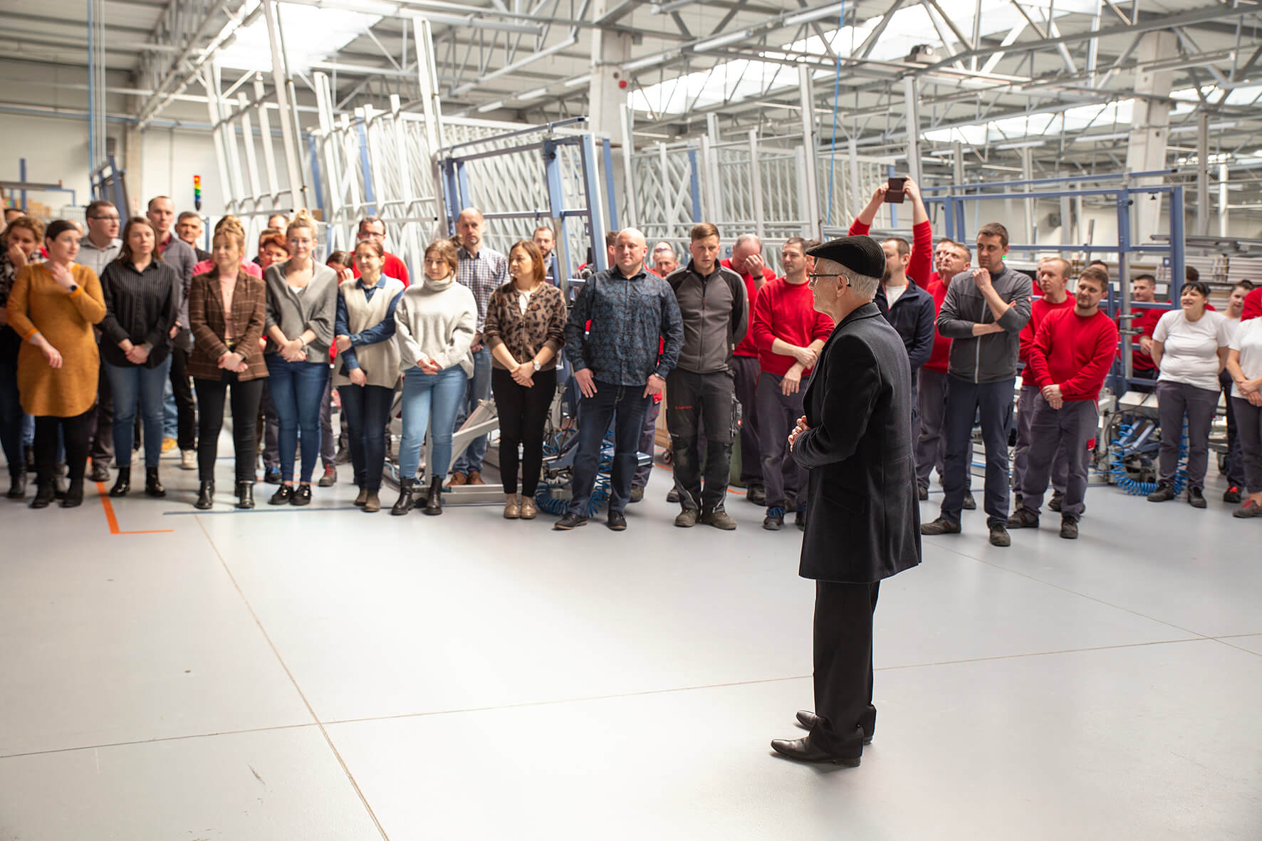 W czasie tegorocznych uroczystości w Grodzisku i Zawadzkiem przybliżyliśmy sylwetkę Pana Jerzego Kapicy pracownikom, którzy nie mieli okazji go poznać. Wyświetlona została prezentacja, której narratorem był sam Majster. Następnie przyszła pora na prezenty. Zależało nam na tym, by stanowiły one nawiązanie do stolarstwa i wywołały przyjemne wspomnienia. Jubilat otrzymał skrzynię z upominkami – 30-centymetrową, drewnianą figurką św. Józefa (patrona stolarzy) z Częstochowy oraz czekoladkami przypominającymi zardzewiałe narzędzia. Skrzynię narzędziową wykonano na wymiar. Umieszczono na niej tabliczkę znamionową (nawiązującą do zamiłowania Pana Jerzego Kapicy do mechaniki). Na tabliczce znalazły się dane (imię, nazwisko, imiona dzieci i wnuków) oraz największe osiągnięcia Pana Jerzego Kapicy. Były Szef otrzymał także dyplom uznania. Wisienką na torcie był prezent od dzieci Pana Jerzego – odnowiony mercedes, z którym wiąże się ciekawa historia.